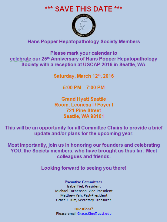 SAVE THE DATE: Celebrating 25 Years of Hans Popper Hepatopathology Society